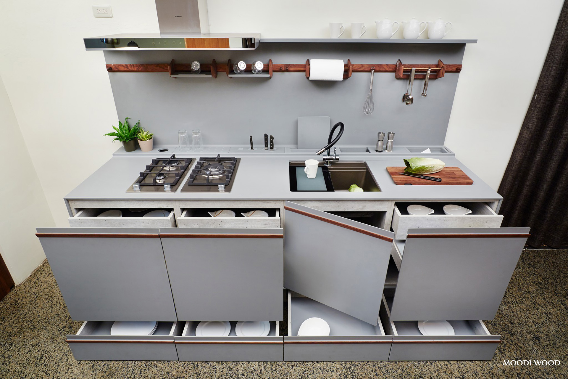 善用檯面後方空間,可將面紙、刀具、砧板、料理用具,放置於此,增加收納與便利性。