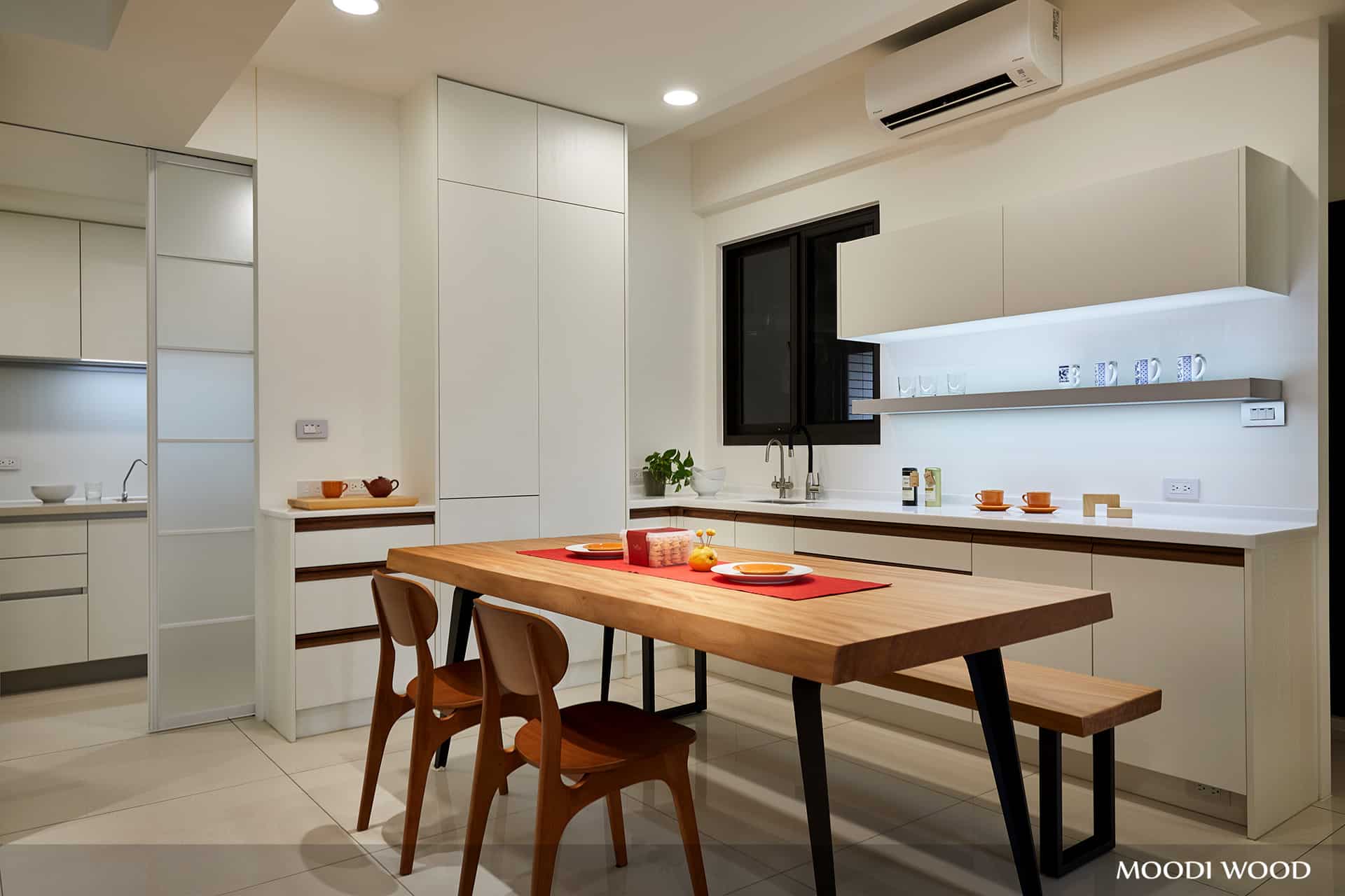 輕食樂園!廚房巧妙規劃,雙面櫥櫃精心共享,讓料理空間倍添靈活。一個空間,多重享受。