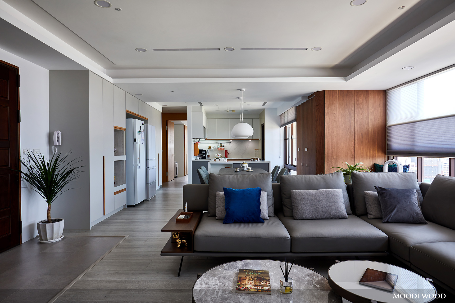 玄關、客廳、餐廳、廚房三合一,實用與美感兼具的舒服自在生活舞台