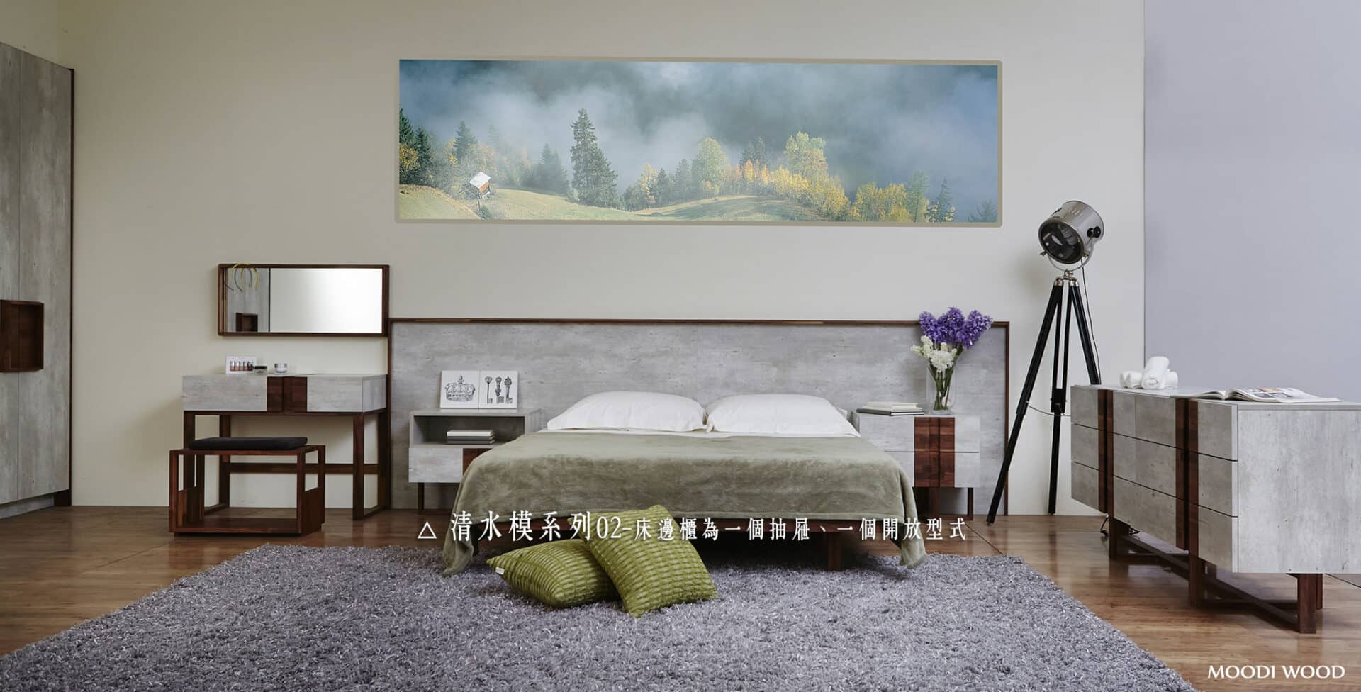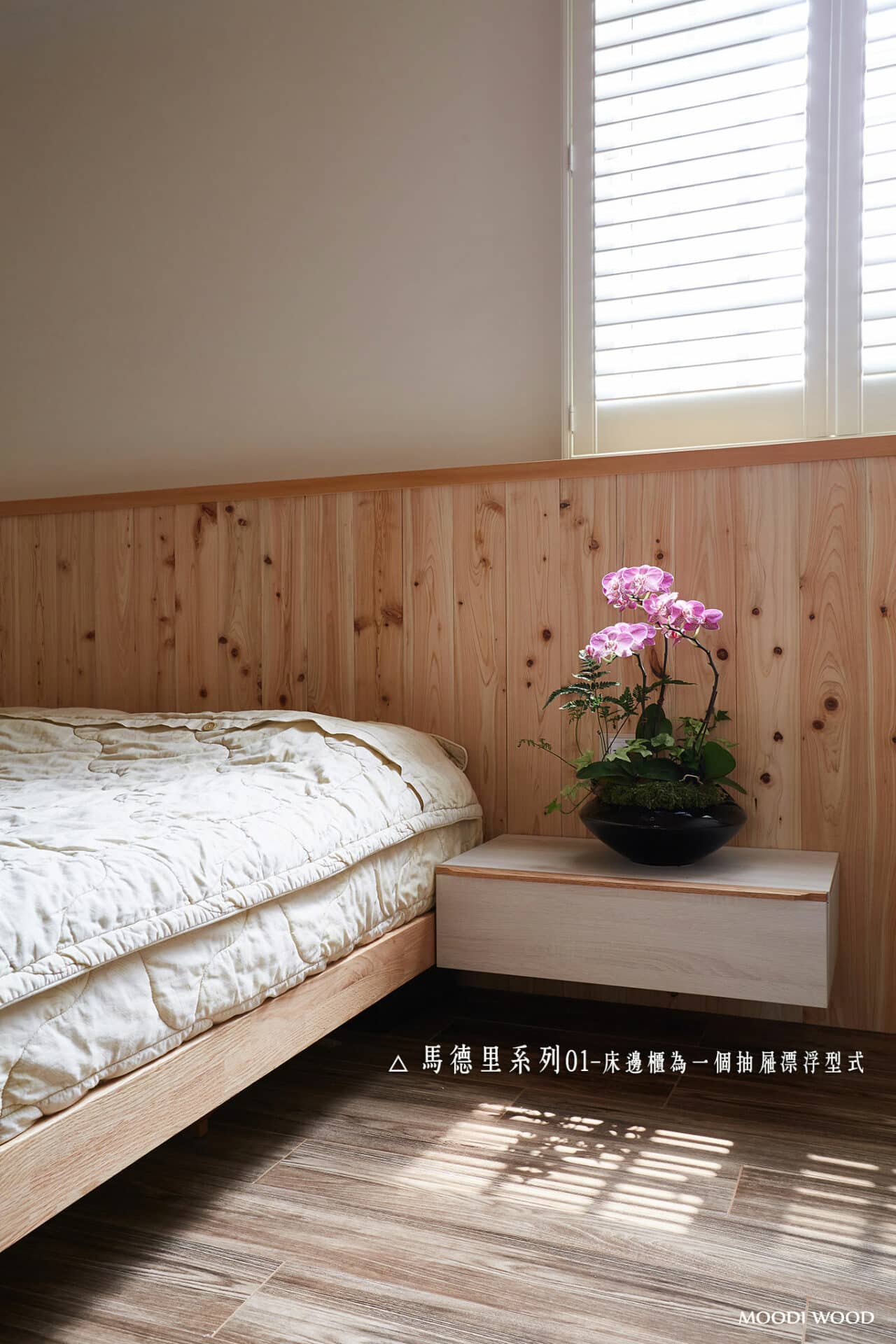 4. 床頭部分有兩個樣式:床壁板+實木、床頭櫃