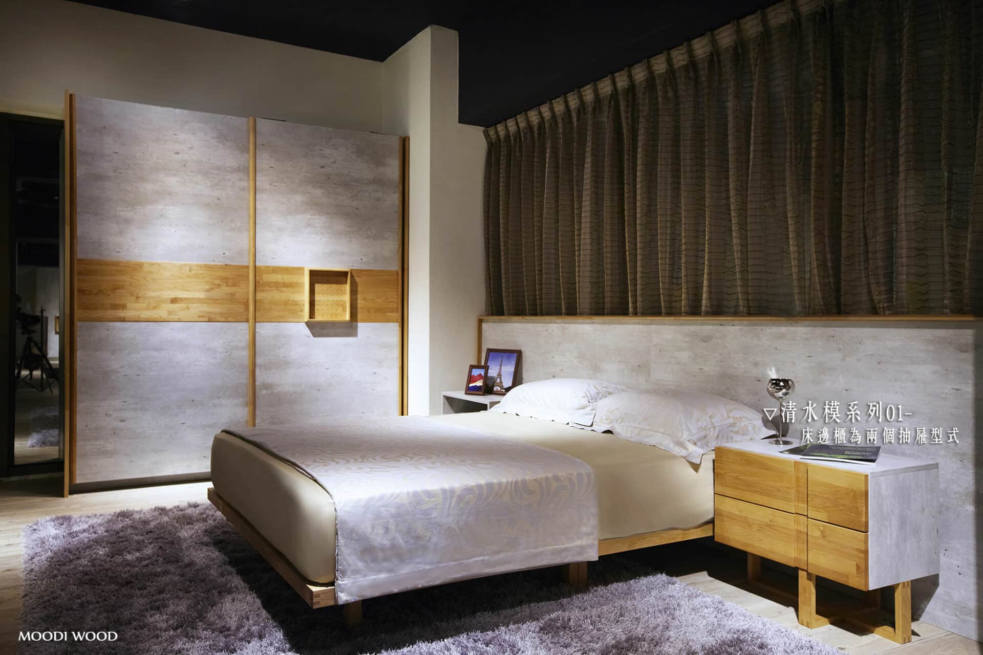 3. 床邊櫃有四個樣式:兩個抽屜、一個抽屜、一個開放+一個抽屜、一個抽屜漂浮