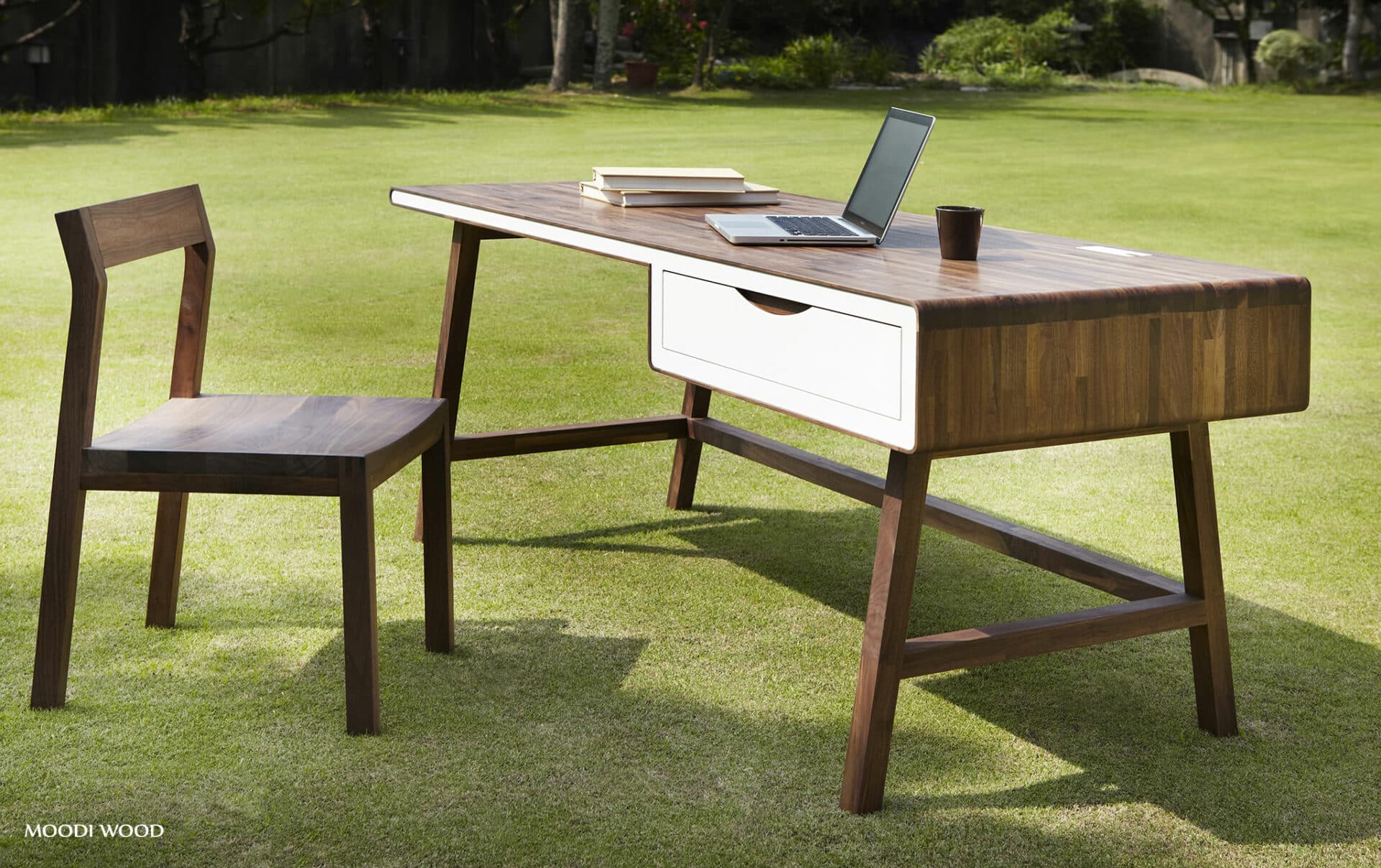 散發出大氣氣息的書桌,放置在空間中,整體視覺感增大