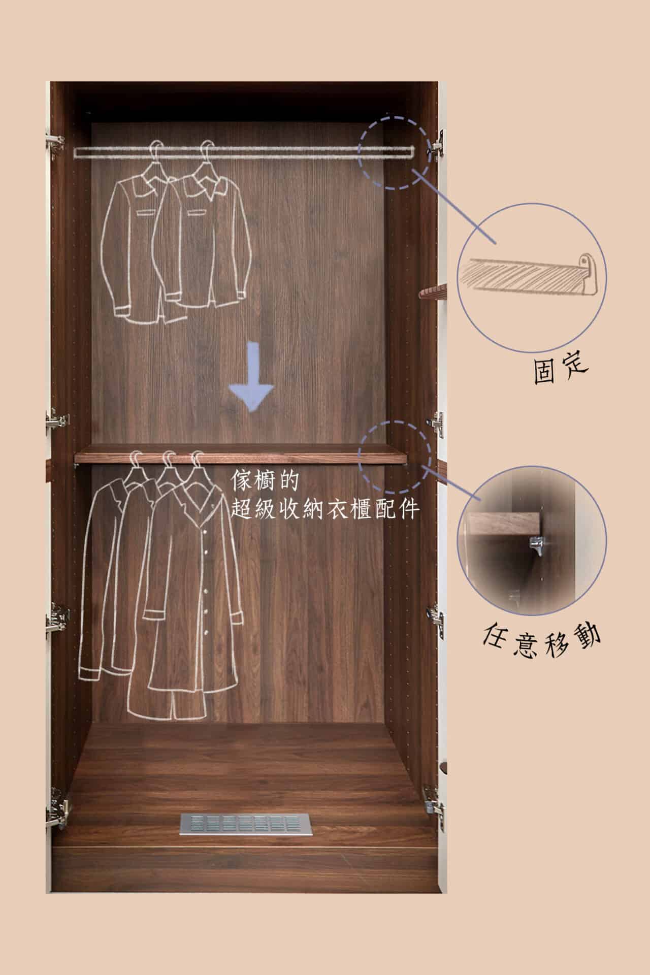 衣櫃的吊衣桿在使用時因為不容易調整高低